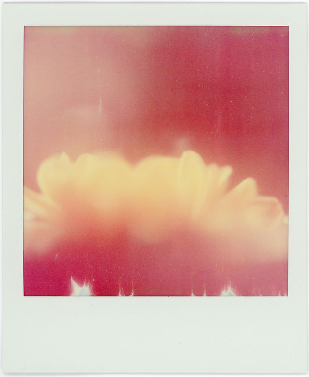 This is a Polaroid film pre-exposed by airport X-rays. The emulsion yields a hazy, distorted palette, merging intentional pink lighting to transform organic reality into a dreamlike chemical experiment.